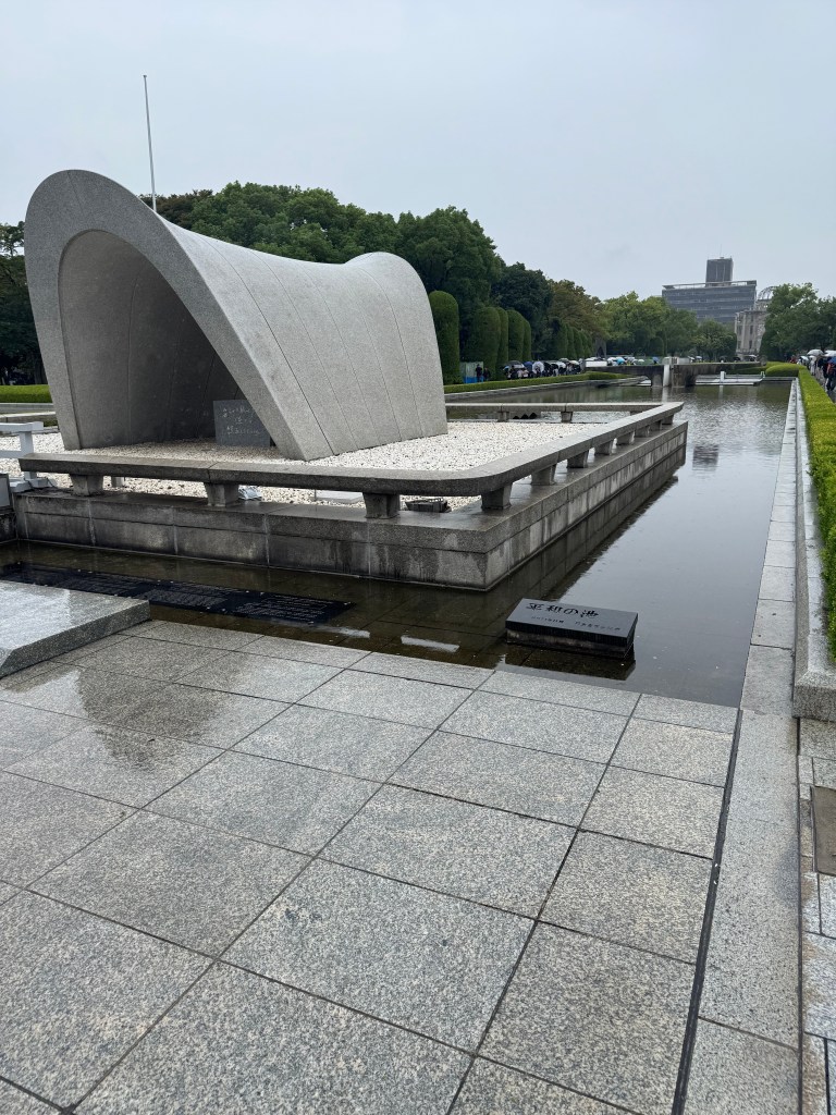 A park setting and monument to the deadly consequence of the atom bomb that was dropped on Hiroshima in 1945.