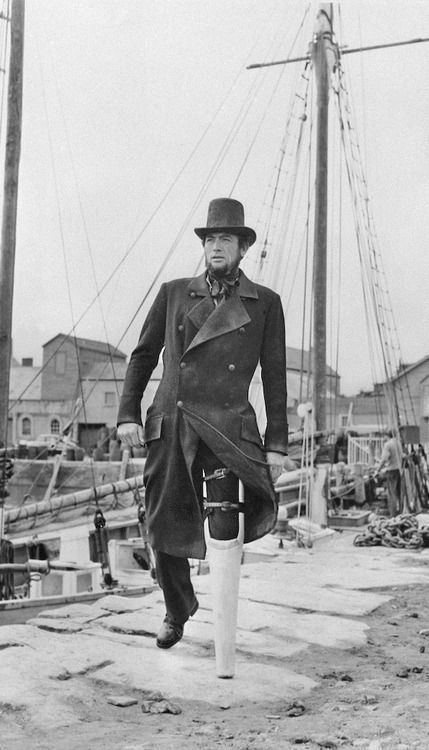 Captain Ahab, as acted by Gregory Peck in 1956, is an imposing, and enduring figure with a scarred face and ivory leg.